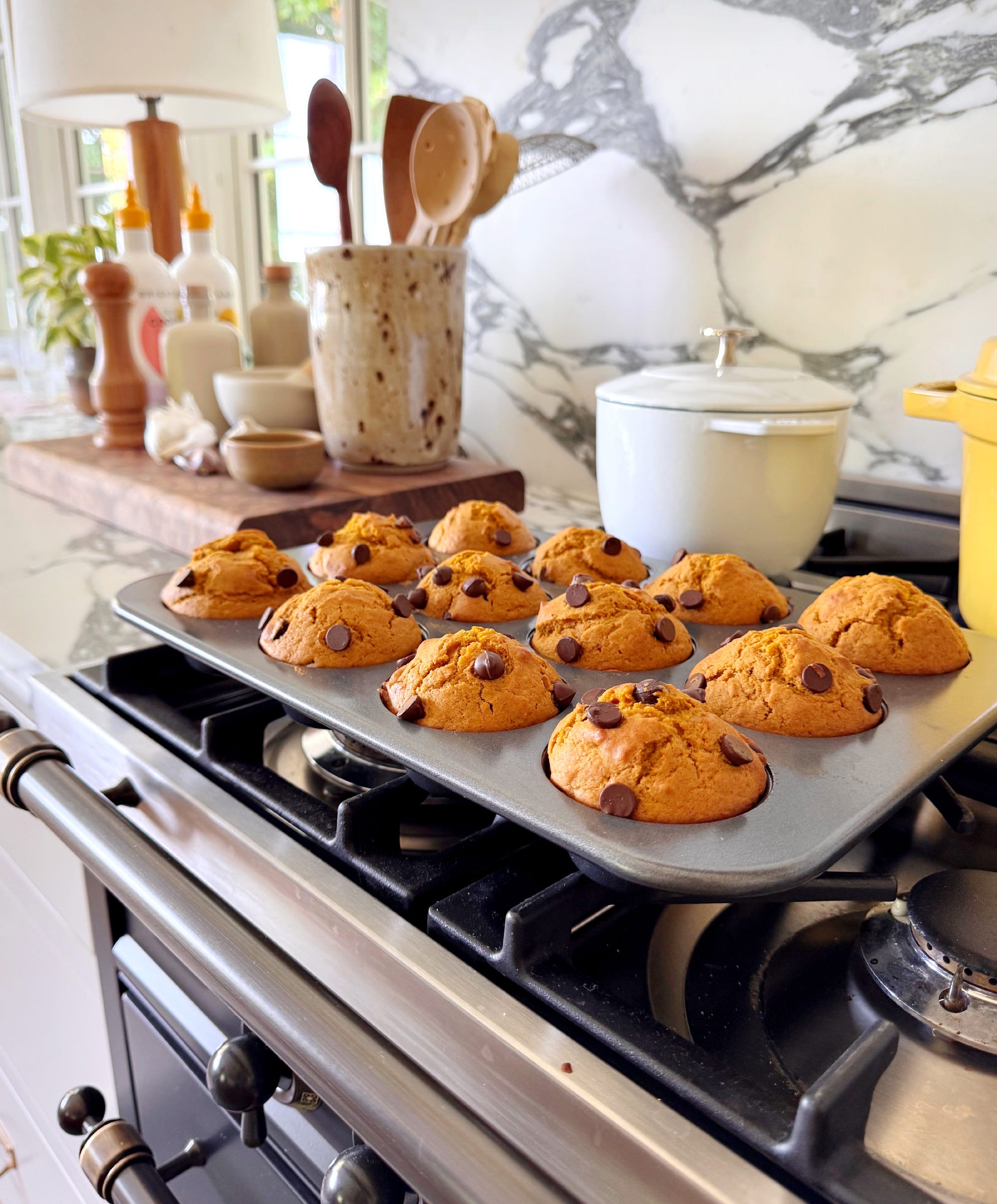 This recipe will officially go up on the blog later in October, but they turned out so delicious that I couldn’t resist sharing them early here on Substack as a special preview. If you’re in the fall spirit this weekend, give them a try! They’re super moist (thanks to a full can of pumpkin) and packed with cozy, spiced flavor. Plus, they’re studded with chocolate chips for extra goodness.